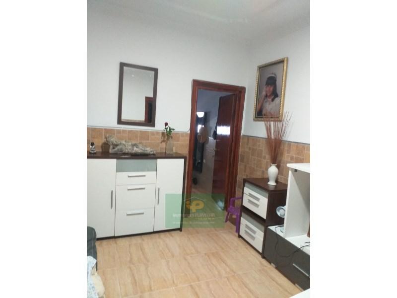 Al entrar a la vivienda tenemos un bonito salón semiamueblado, totalmente exterior con aparato de aire acondicionado y revestimiento de imitación a ladrillo a media altura. A la izquierda nos encontramos con el dormitorio principal, el cual se quedaría completo a falta del somier con muebles seminuevos y armario corredero. A la derecha en el pasillo tenemos el segundo dormitorio que se quedaría sin amueblar, a continuación tenemos el cuarto de baño, bastante amplio y recientemente reformado con plato de ducha de pared a pared y ventana para mayor ventilación. Seguidamente tenemos una cocina con bastante amplitud con muebles lacados en blanco, completamente amueblada y con algunos electrodomésticos.