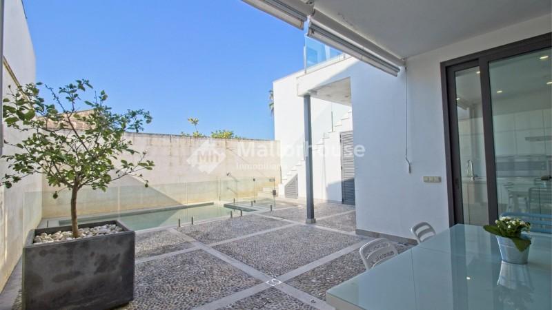 AVAILABLE SEPTEMBER AND OCTOBER~Magnificent house in the center of Muro. With a constructed area of more than 300 m2.~Distributed in three double bedrooms with fitted wardrobes, three modern bathrooms. Two of them have access to a huge terrace. Laundry area.~On the ground floor there is a beautiful entrance-distributor with original vaults from the year 1700, a spacious living room next to a large kitchen.~Outside there is a practical covered terrace as well as a patio-solarium with a swimming pool.~ It has a garage for a medium-sized vehicle.~Located 40 minutes from Palma and 10 minutes from Playa de Muro and Can Picafort.~Pets are not allowed.~\"Situated slightly inland, in the agricultural region of Pla de Mallorca, Muro is a traditional rural town, which also manages the small resort of Playa de Muro. This picturesque town, with its sandstone buildings and ancient church, is a typical example of traditional Mallorca.Today, Muro is served by tourism and agriculture and is located in the area known as the \'vegetable basket\' of Mallorca.It lies on the fertile plain, or \'Pla\', which has a rich agricultural tradition that still continues today.In this area you can find many fresh products and a thriving wine industry.Muro is a residential town, with all the shops and services necessary for day to day.Sundays at There is an impressive market of fresh local produce in the morning and some Wednesday nights there is a market on Playa de Muro selling local handicrafts.\" Source: https:-- -