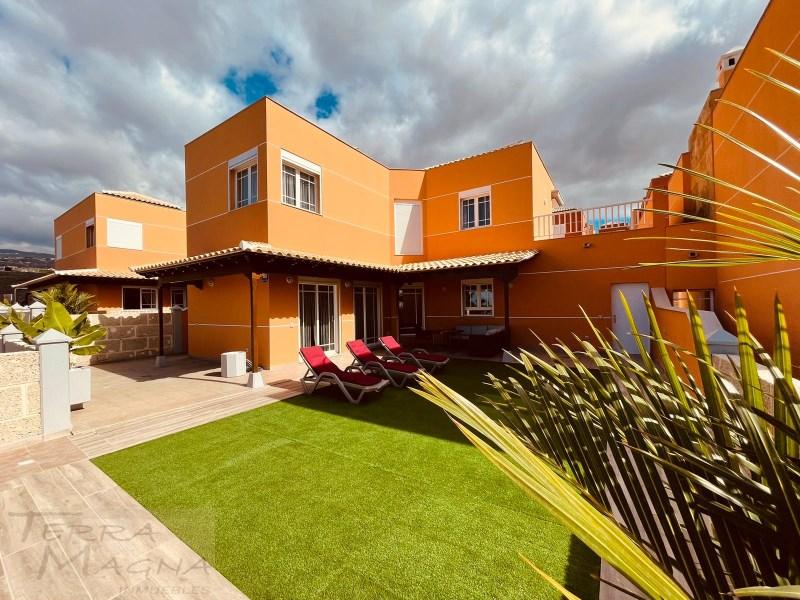 Tenemos en venta una villa en Los Cristianos en una zona mas tranquila, dispone de 4 dormitorios y de ellos uno esta en la planta baja y se puede usar como oficina, 3 baños con plato de ducha y moderno, un aseo de invitados en la planta baja.