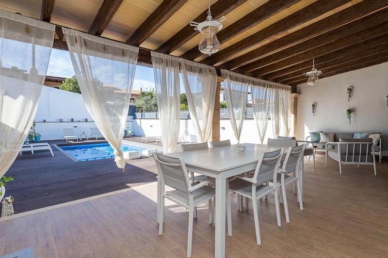 Se alquila este magnífico adosado de dos plantas y sótano, completamente amueblado y en impecable estado de conservación, situado en una de las zonas más demandadas de Marratxí: Sa Cabaneta. La vivienda, de cuidada distribución y gran funcionalidad, dispone, en la primera planta, de tres amplios dormitorios dobles con armarios y muy luminosos. Cuenta además con dos baños completos —uno de ellos en suite— y un aseo de cortesía en la planta baja. En la planta baja, y accediendo a través de un distribuidor, destaca un amplio salón-comedor con acceso directo al exterior y una cocina independiente completamente equipada, ambas dependencias tienen salida hacia un acogedor porche cubierto que se abre a un gran solárium y piscina.~La propiedad está equipada con aire acondicionado y calefacción, e incluye una plaza de aparcamiento privada, trastero-almacén y una práctica sala multifuncional localizada en el sótano y que puede destinarse a despacho, gimnasio o zona de juegos. Su ubicación y orientación es excelente, en un entorno residencial tranquilo y bien comunicado, con colegios, transporte público y servicios esenciales a escasa distancia. La vivienda disfruta de unas vistas despejadas a la montaña.~Una vivienda proximidad a Palma, ideal para quienes buscan un hogar confortable, funcional y listo para entrar a vivir.~Condiciones del arrendamiento:~Los suministros (luz, agua, gasoil) y la tasa de basuras serán por cuenta del arrendatario.~Será necesario acreditar solvencia económica y estabilidad laboral. Se valorará positivamente la aportación de avalista personal ~No se admiten animales domésticos.~